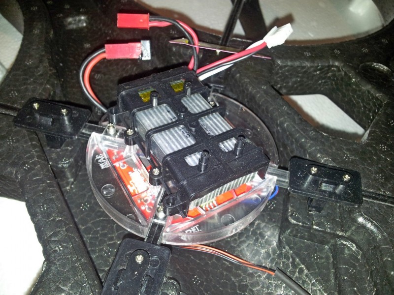 Quadorcopter wykonany jest z bardzo lekkiego, wytrzymałego tworzywa, tzn. włókna węglowego i pianki EPP.