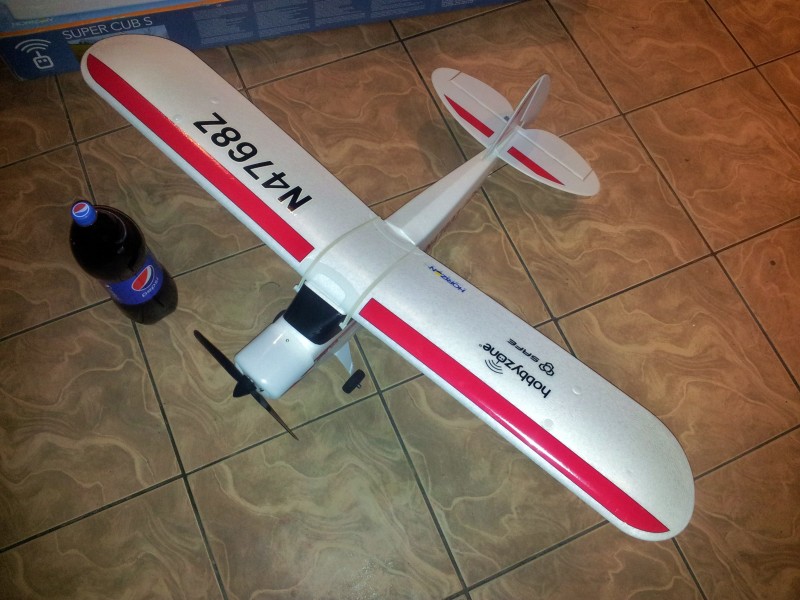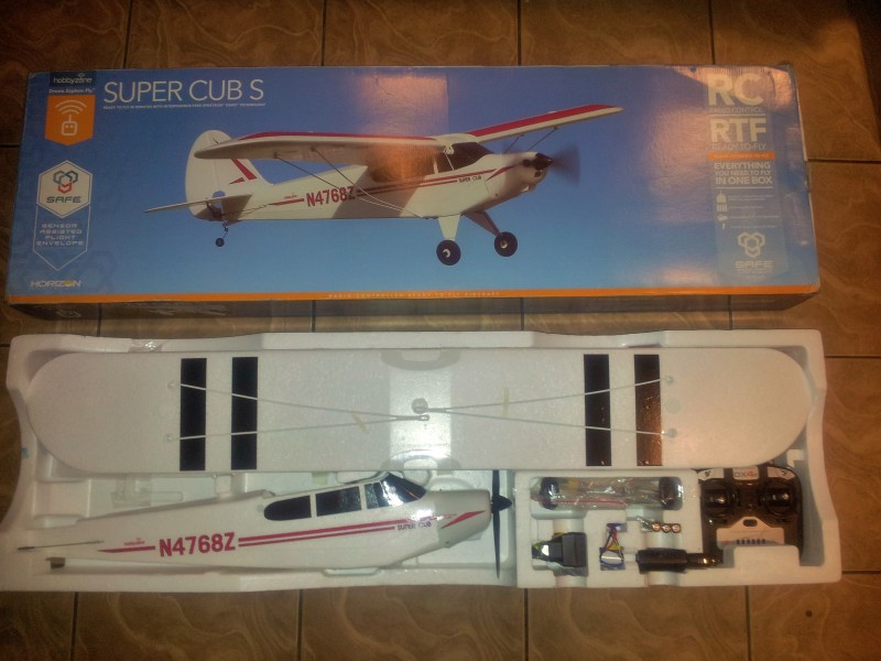 Zestaw zawiera kompletnie złożony model samolotu RC Super Cub SAFE od Hobbyzone z zainstalowanym silnikiem, regulatorem, odbiornikiem i serwami. Akumulator LiPol 11.1V 1300mAh z ładowarką i zasilaczem.Nadajnik Spektrum Dx4e.